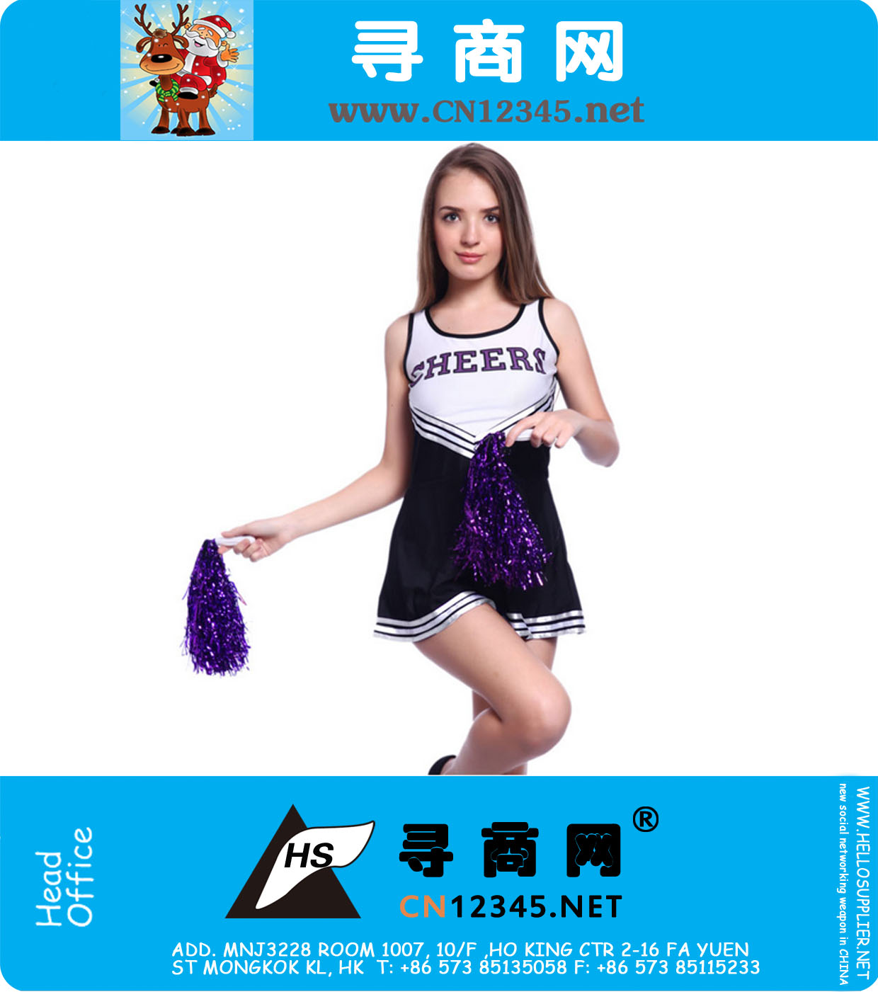 High School Sports Team Cheerleader Girl Unifrom costume Outfit + Pom Poms